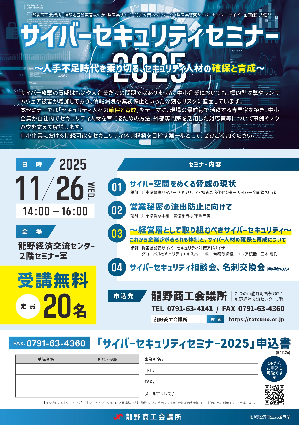 現場で活躍する専門家を招き、中小企業が自社内でセキュリティ人材を育てるための方法、外部との連携の可能性、そして地域全体でセキュリティ力を高めるための取組みについて、具体的な事例やノウハウを交えて解説します。